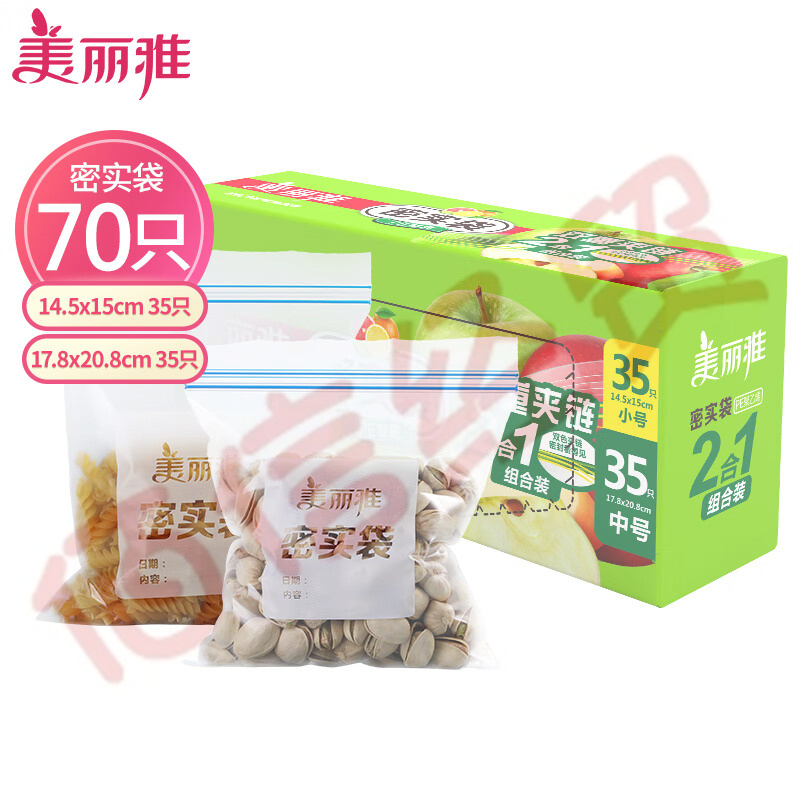 美麗雅 食物密封袋共70只中號+小號 加厚自封袋透明保鮮密實(shí)袋子 廚房用封口袋保鮮袋(24個/箱)(5個起售)