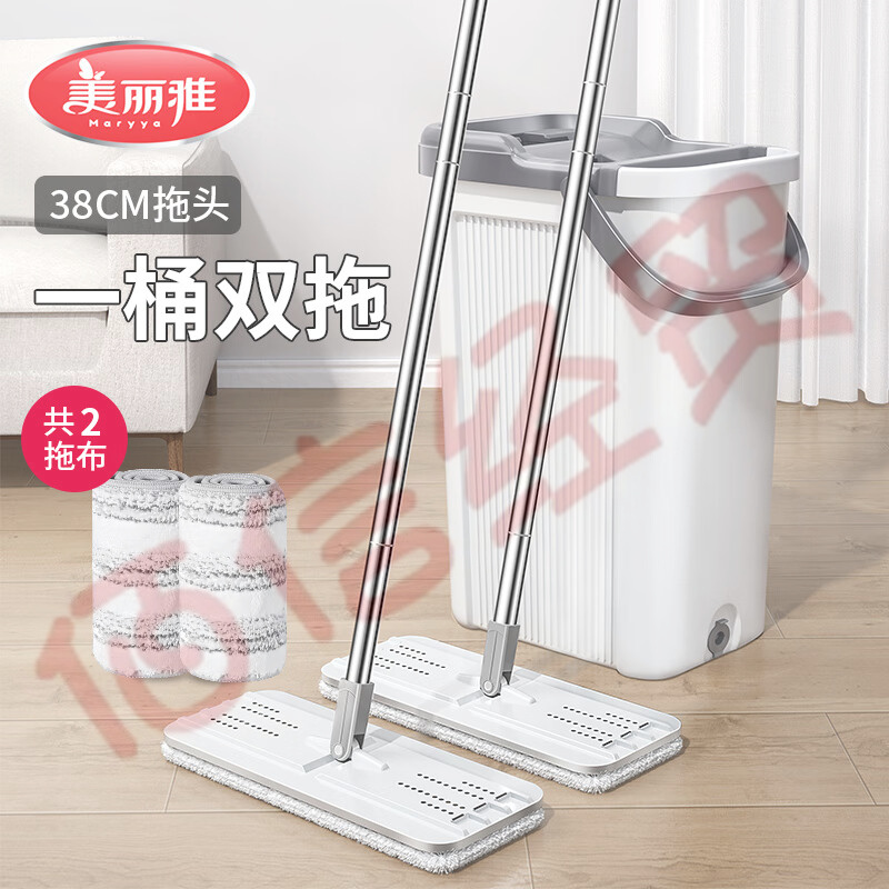 美麗雅 洗刷刷平板拖把桶特大號 一刷凈免手洗懶人地拖一拖凈 干濕兩用大拖頭平板拖把 共2個拖布(2個/箱)