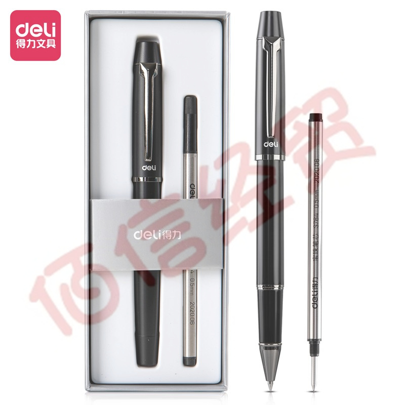 得力(deli)金屬寶珠筆套裝 中性筆簽字筆套裝 附1支筆芯 0.5mm子彈頭S153黑 自營