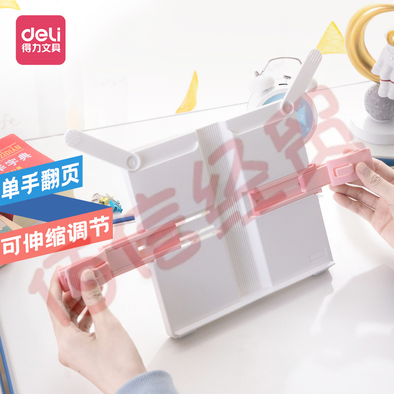 得力(deli)多功能閱讀架 可伸縮折疊便攜式讀書夾兒童坐姿矯正閱讀支架課本夾書文具六一禮物 粉白色 70531 自營