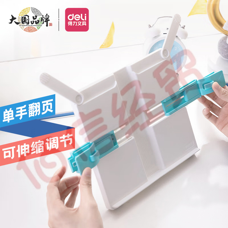 得力(deli)多功能閱讀架 可伸縮折疊便攜式讀書夾 兒童坐姿矯正閱讀支架課本夾書文具六一禮物 藍(lán)白色 70531 自營(yíng)