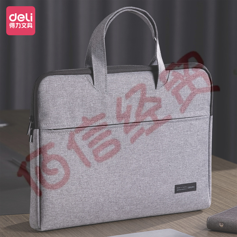 得力(deli)加厚立體辦公手提袋/會議包/事務包/商務拉鏈袋電腦公文包便攜 淺灰5590 自營
