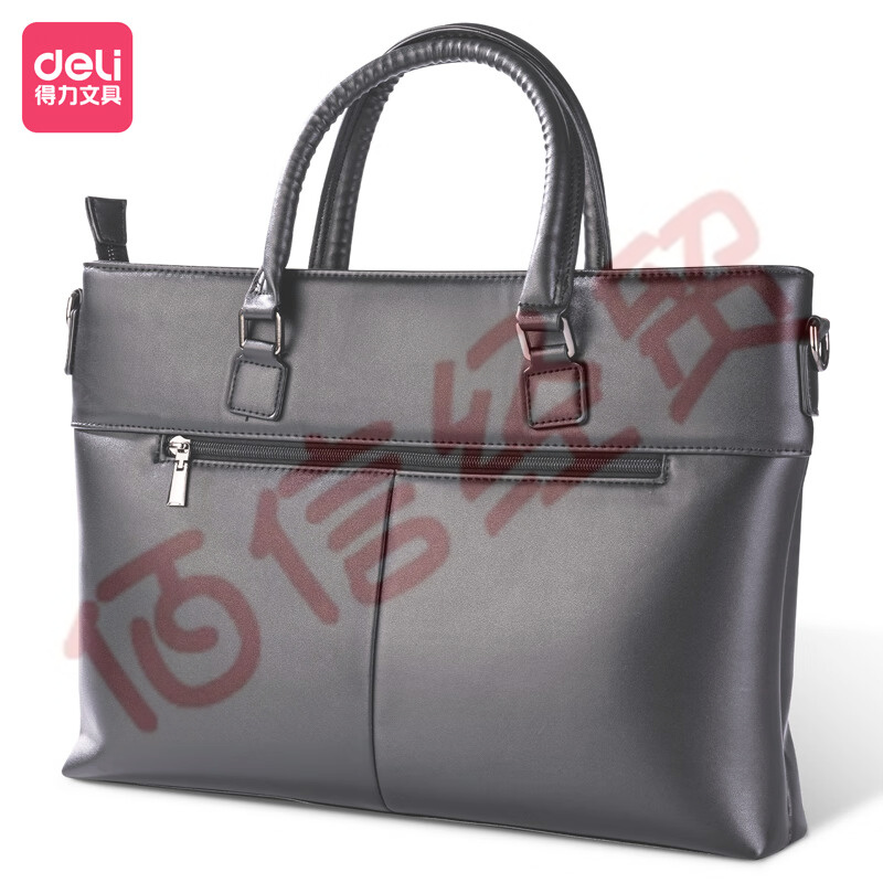 得力(deli)加厚皮質立體辦公手提袋/會議包/事務包/商務男女職業(yè)拉鏈袋電腦公文包 黑色63813 便攜 自營