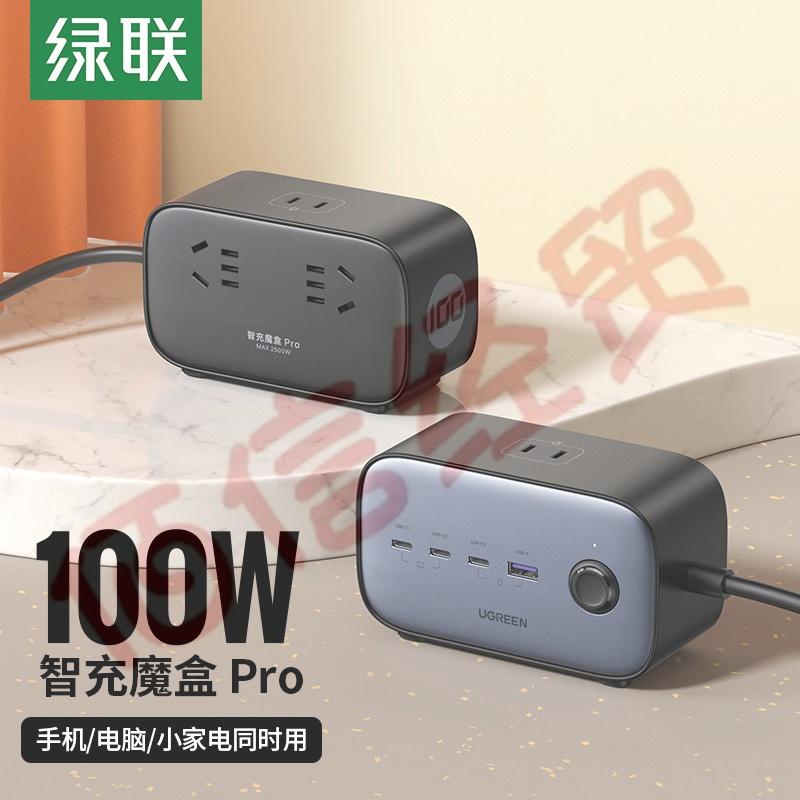 綠聯(lián) 氮化鎵充電器100W智充魔盒桌面插座排插PD多口快充頭Type-C/USB插線板適用蘋果14/13華為小米手機(jī)筆記本 自營(yíng)