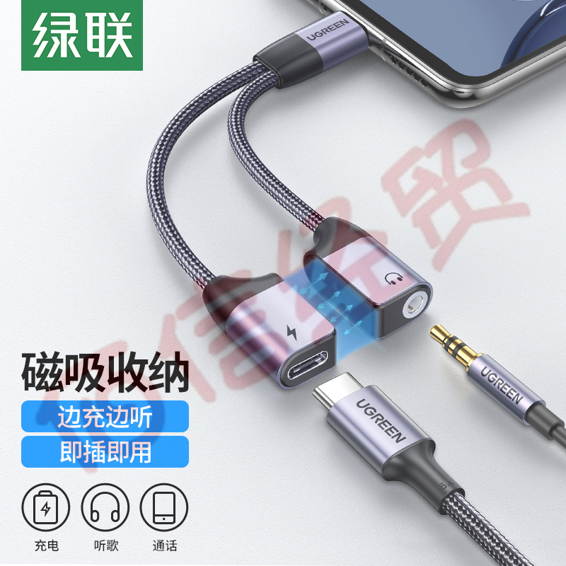 綠聯(lián) 耳機(jī)轉(zhuǎn)接頭 Type-C轉(zhuǎn)3.5mm音頻數(shù)據(jù)線USB-C轉(zhuǎn)換器 充電聽歌二合一適用小米10/9華為Mate40Pro 自營