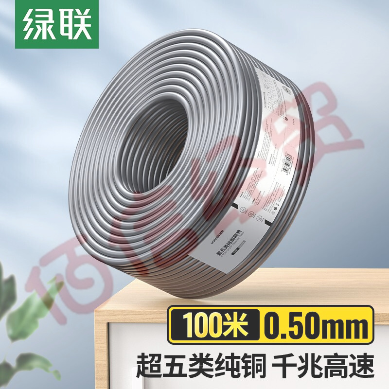 綠聯(lián)(UGREEN)灰色超五類網(wǎng)線100米【0.50mm純銅線芯】千兆雙絞箱線家裝網(wǎng)絡(luò)布線監(jiān)控專用 NW108/11253 自營