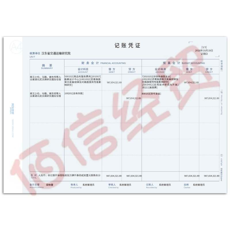 西瑪用友表單A4平行記賬憑證KPJ501--500份/包 2包/箱 297*210(整箱價)(整箱售) 自營