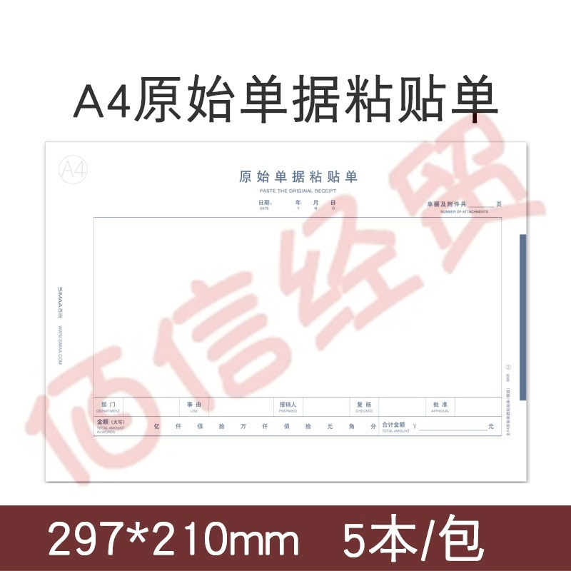 西瑪全A4原始單據粘貼單(橫版)8806 70克木漿原紙 297*210mm 50頁/本 5本/包 12包/箱(單包價-整箱售-拍12組) 自營