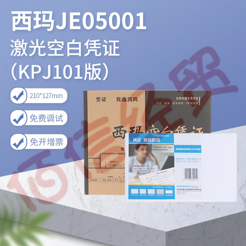 西瑪表單JE05001激光空白憑證打印紙(KPJ101版)尺寸軟件通用:210*127mm(整箱售) 自營