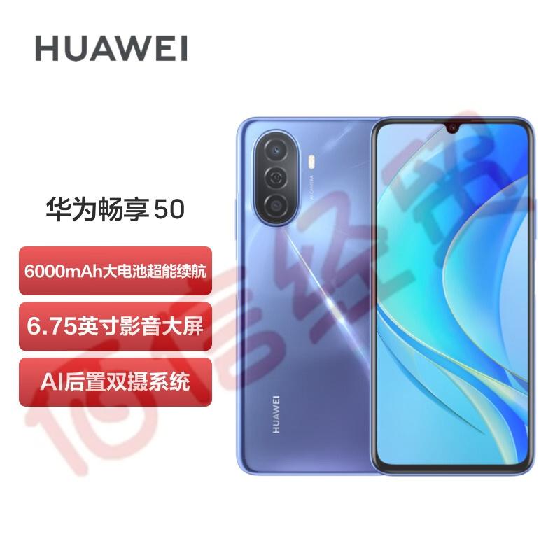 華為暢享 50 6000mAh大電池 22.5W超能續(xù)航 6.75英寸影音大屏 雙卡雙待 智能手機 8G+128GB 冰晶藍 鴻蒙手機 自營