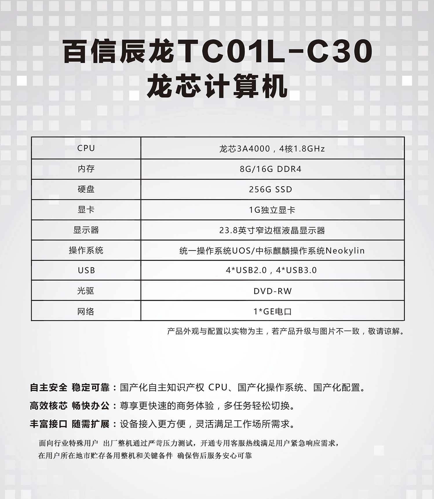 百信辰龍TC01L—C30商用臺式電腦(專用版)) 自營