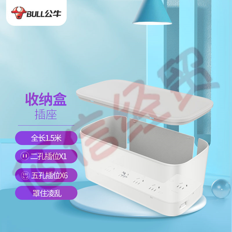 ¥115.40公牛(BULL)20W PD蘋果快充插座/插線板/插排/接線板 Type-c口+USB口+6插孔 全長1.8米白色 GNV-U1206