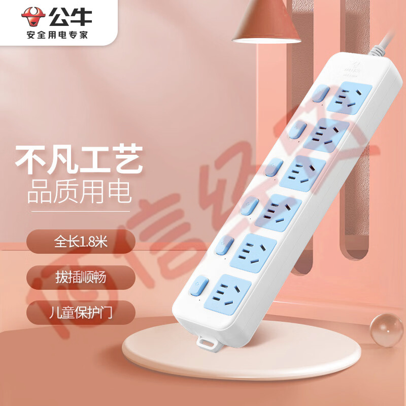 ¥97.00公牛(BULL)20W PD蘋果快充插座/插線板/插排/接線板 Type-c口+USB口+6插孔 全長1.8米 GNV-U12033