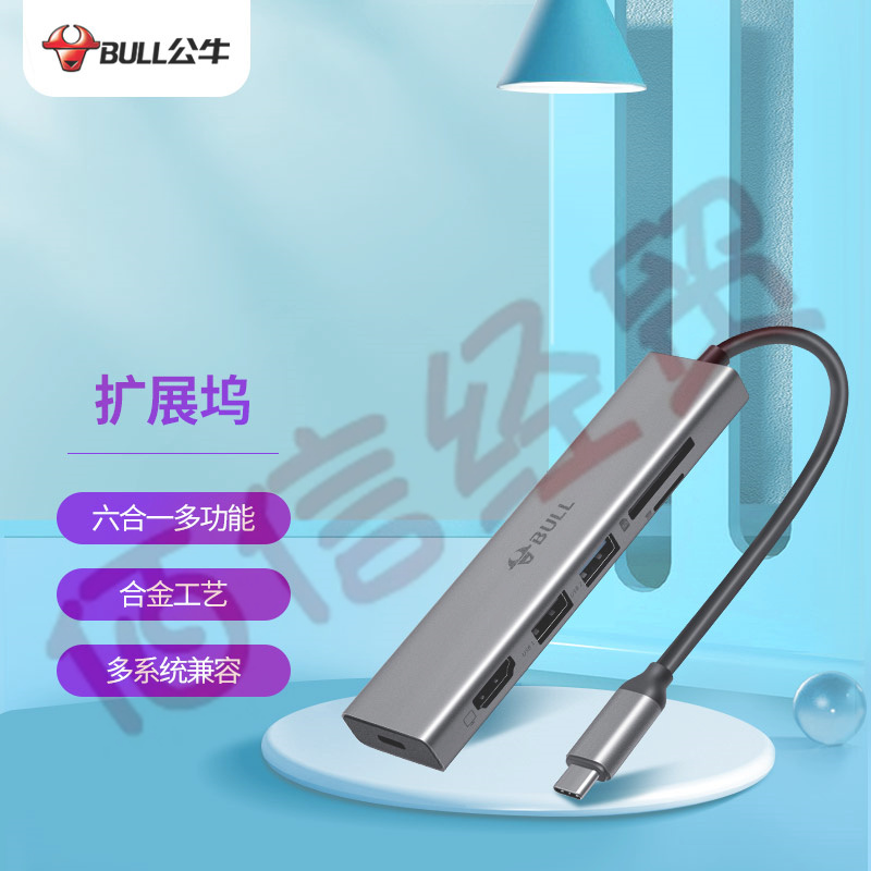 公牛(BULL)華為蘋果電腦轉換器 macbookpro筆記本hdmi轉接頭usb六合一擴展塢GNV-JH1506 自營