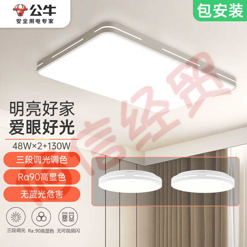 公牛(BULL)吸頂燈 明皓MX-C130E-BS客廳燈全屋燈北歐現(xiàn)代簡約 3燈-客廳+臥室x2 自營