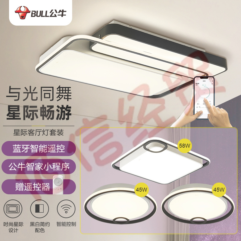 公牛(BULL)LED吸頂燈X36星際MX-M130B-CD無線遙控/小程序智能控制/無極調(diào)光燈具 :客廳燈+方形燈+臥室燈*2 自營