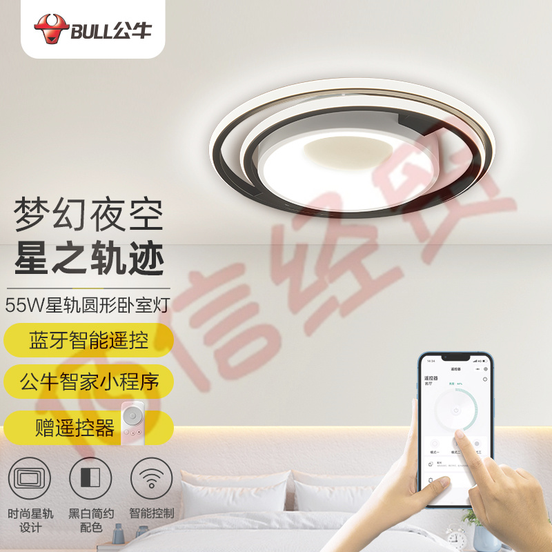 公牛(BULL)智能吸頂燈 X35星軌系列 遙控器小程序控制MX-M060A-CD臥室燈餐廳燈 無極調(diào)光/三檔調(diào)色 圓形55W 自營