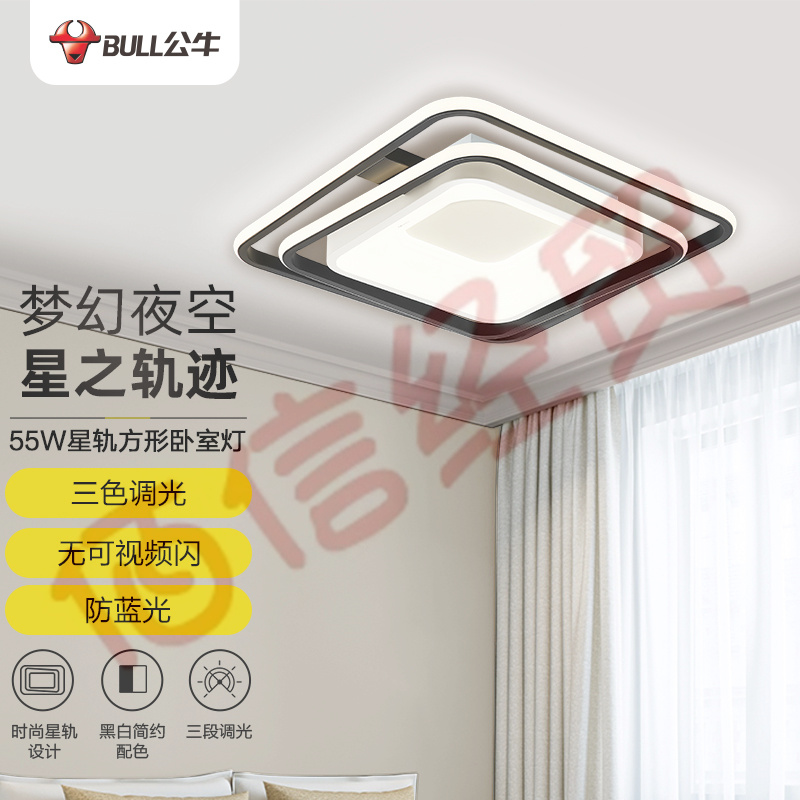 公牛(BULL)LED吸頂燈 X35星軌系列 MX-M065A-CD客廳燈臥室燈餐廳燈 三檔調(diào)光 方形55W 自營