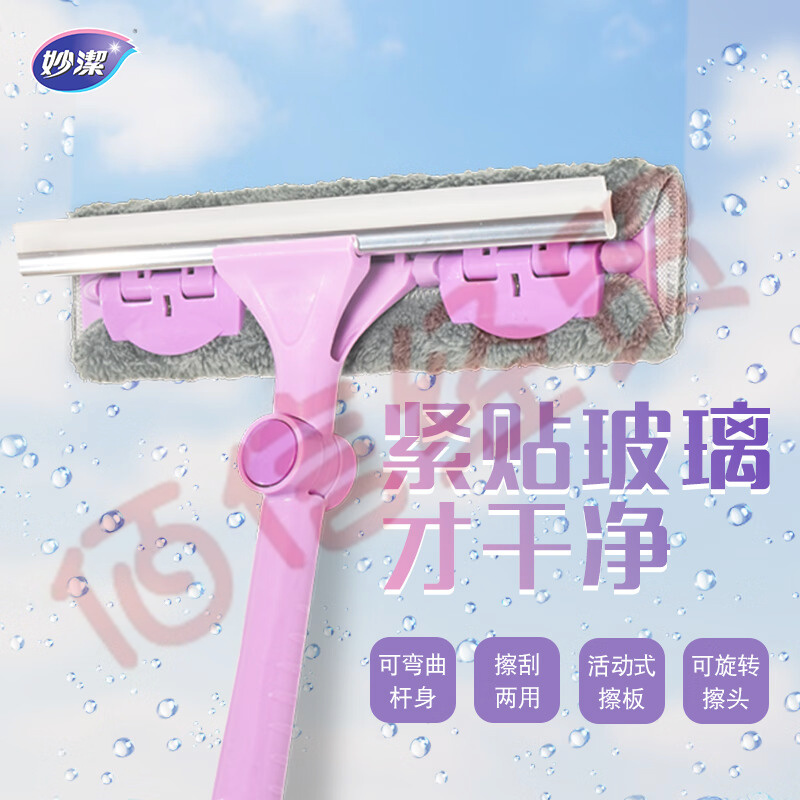 妙潔 擦玻璃神器 魔鏡亮窗戶清潔 可拆式刮擦兩用 可旋轉(zhuǎn)擦頭伸縮彎曲(5包起售) 自營
