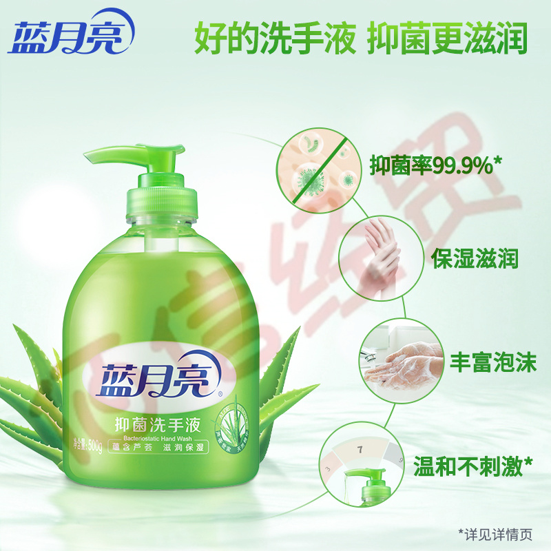 藍(lán)月亮 蘆薈抑菌洗手液500g瓶 清潔抑菌99.9% 泡沫豐富 易沖洗12瓶/箱(單瓶價)(整箱售) 自營