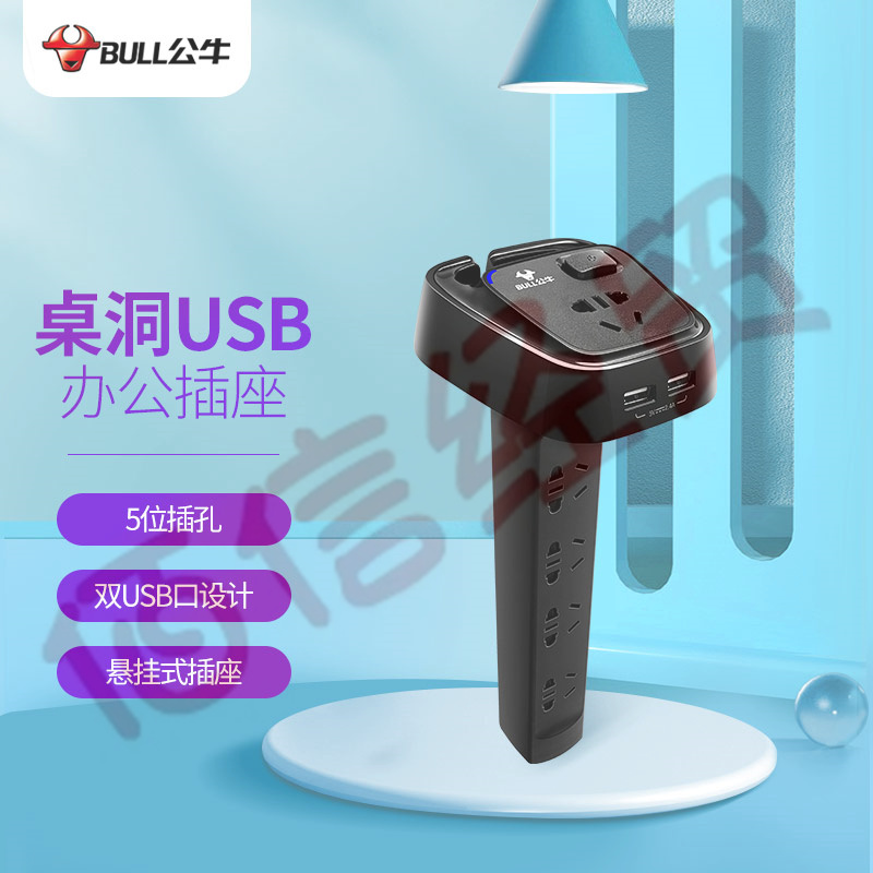 公牛(BULL)公牛桌洞USB插座/插線板/插排/排插/接線板/拖線板 5插孔+2USB口 GN-U2050