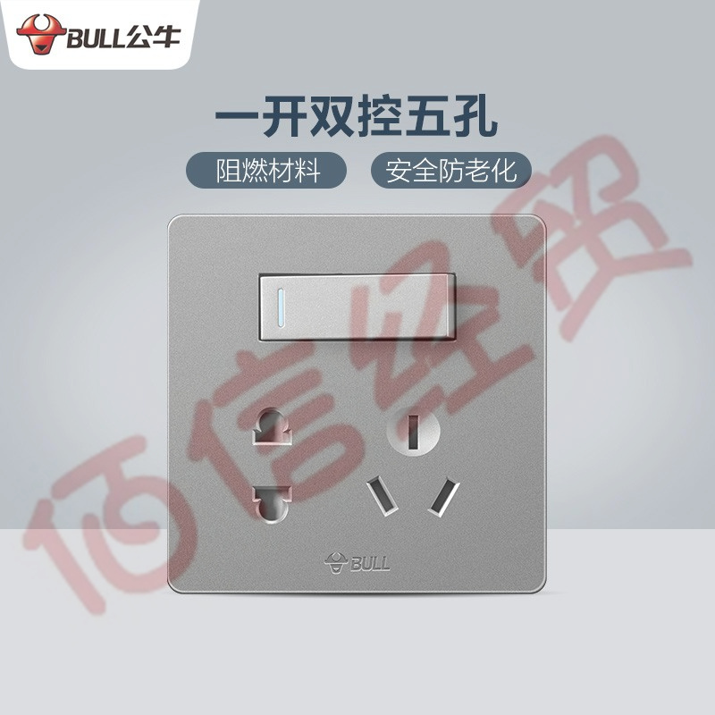 ¥251.20萬家 公牛開關(guān)插座 G12星空灰系列 大面板插座 墻壁電源插座開關(guān)面板 一開雙控五孔 G12E334