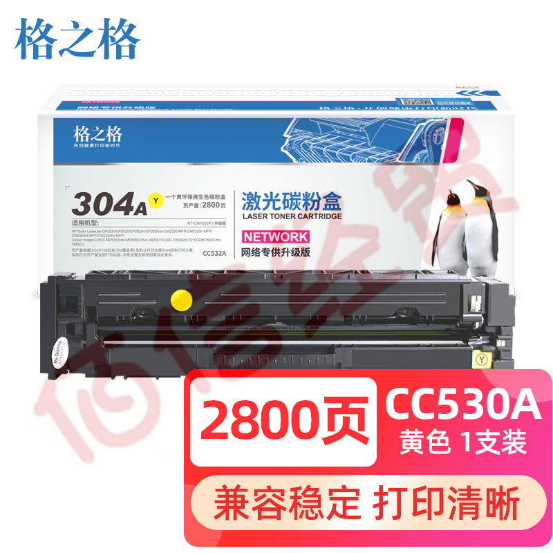 格之格CC532A硒鼓NT-CN0532Y適用惠普CP2025 CM2320nfMFP cp2020佳能7210cdn 7680cx打印機hp304A黃色硒鼓 自營