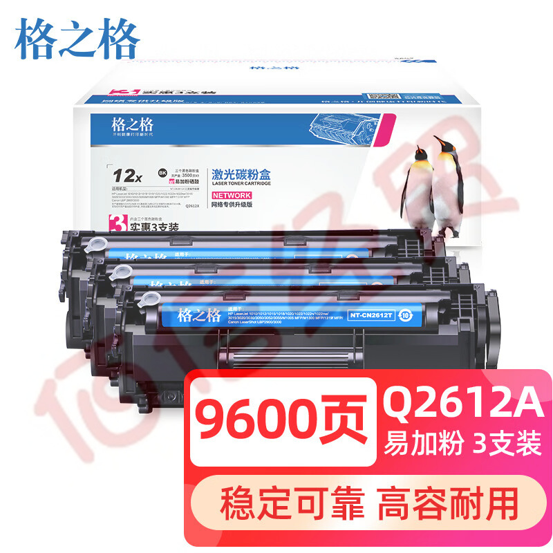 格之格12a硒鼓適用惠普1020硒鼓 hp m1005 q2612a 1020plus 1010 1018 佳能lbp2900打印機墨盒易加粉3支裝 自營