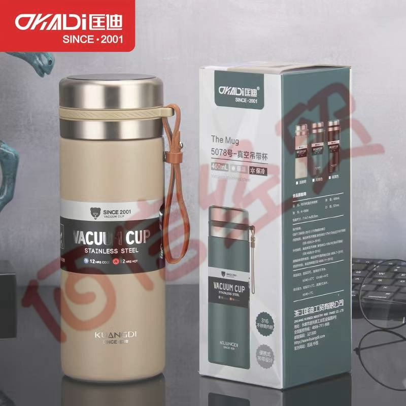 新款匡迪保溫杯新品5078號高真空吊帶杯智能數(shù)顯溫顯杯內(nèi)膽316強勁控溫 黑色460ml 自營