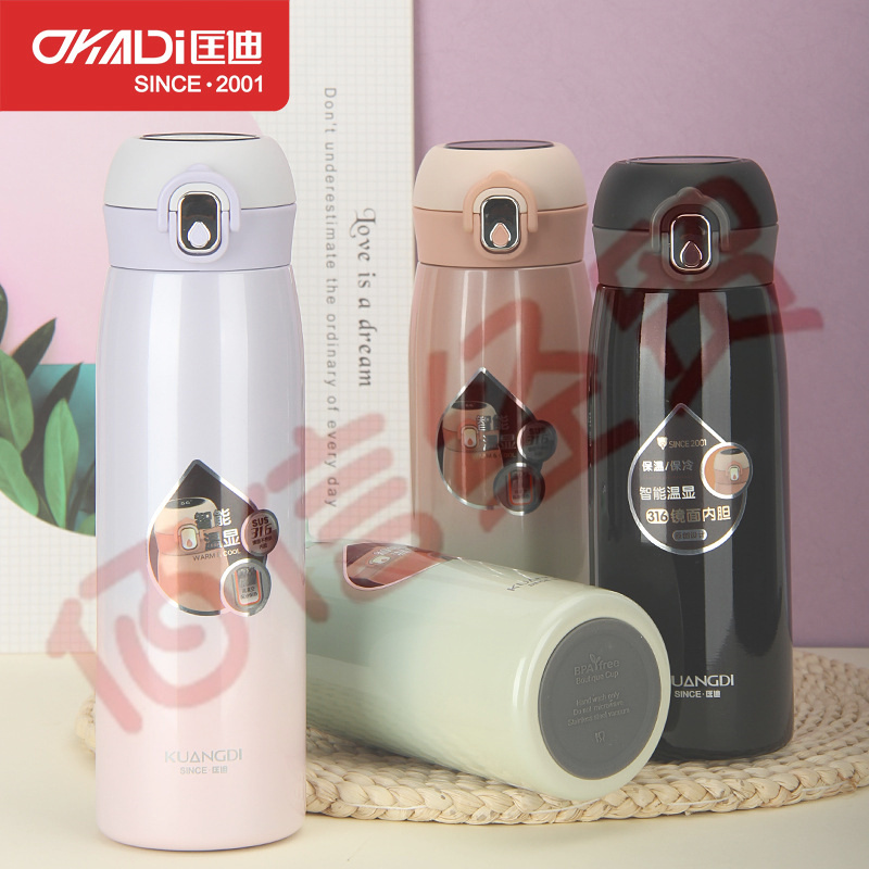 新款匡迪保溫杯高真空316不銹鋼內(nèi)膽智能溫顯彈跳保溫杯316內(nèi)膽庚美水杯 熏衣紫400ML 316不銹鋼 自營