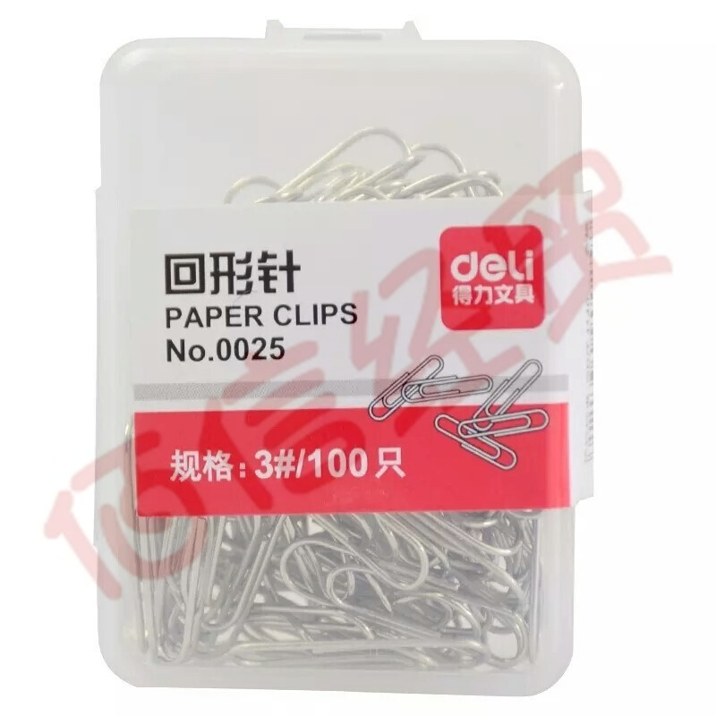 得力(deli) 0025銀色回形針 100枚曲別針 辦公文化用品 10盒裝 自營