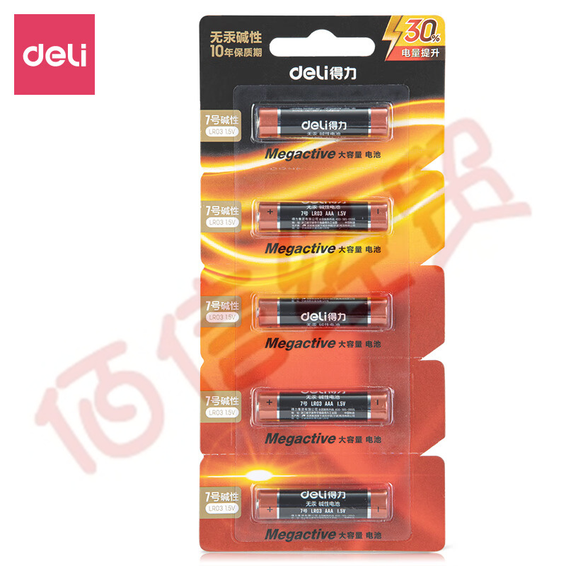 得力(deli) 堿性7號(hào)電池 遙控器鼠標(biāo)玩具電池 5粒撕卡裝 50卡裝 18511 自營(yíng)