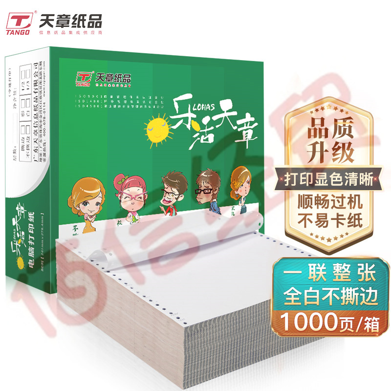 天章(TANGO)樂活天章 針式打印紙 一聯(lián)整張不撕邊電腦打印紙 全白一聯(lián)打印紙(241-1 全白 1000頁/箱) 自營
