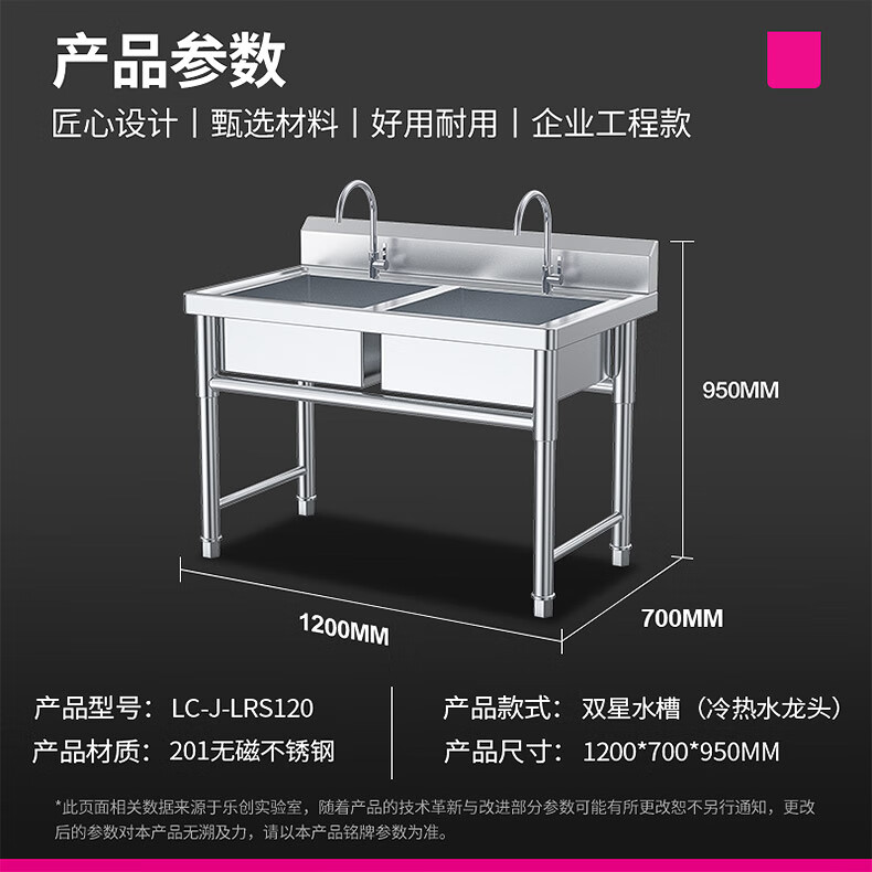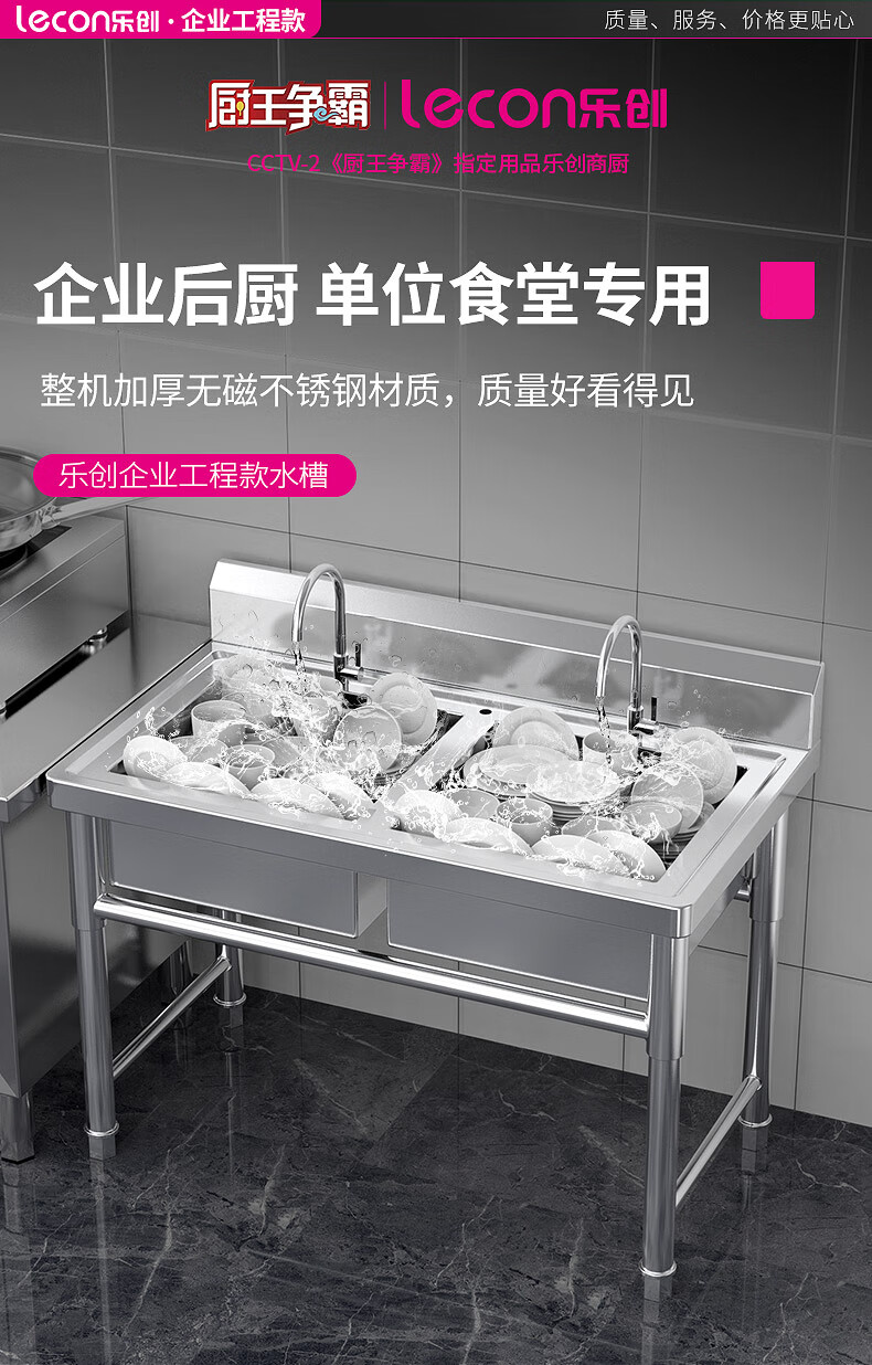 樂(lè)創(chuàng)(lecon)商用雙星水池 201不銹鋼洗碗洗菜池洗手盆 LC-J-GSC02【企業(yè)工程款】