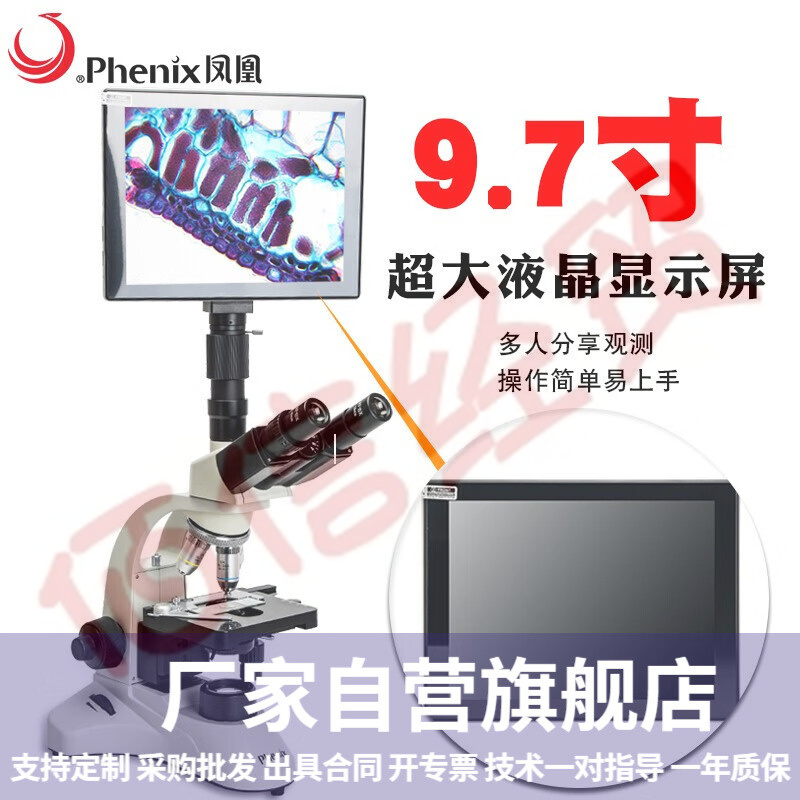 Phenix鳳凰三目生物顯微鏡專業(yè)級高倍高清醫(yī)藥水產(chǎn)養(yǎng)殖畜牧美容雞豬活體精檢測看魚病細菌顯微鏡便攜 套餐6:特配+9.7寸液晶電腦500萬像素/含軟件 自營