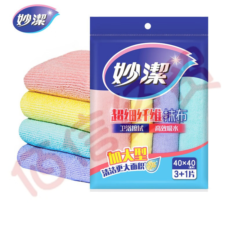 妙潔超細(xì)纖維抹布家務(wù)清潔擦拭布除塵布擦桌布吸水不掉毛多功能抹布 加大40*40cm 4片(10包起售)