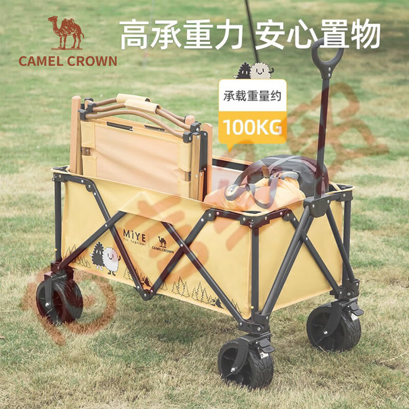 駱駝CAMELCROWN【小芒聯(lián)名】戶外露營(yíng)便攜營(yíng)地車野餐推車郊游手拖拉車聚攏型 173BAKP076,營(yíng)地車,芒果黃 自營(yíng)