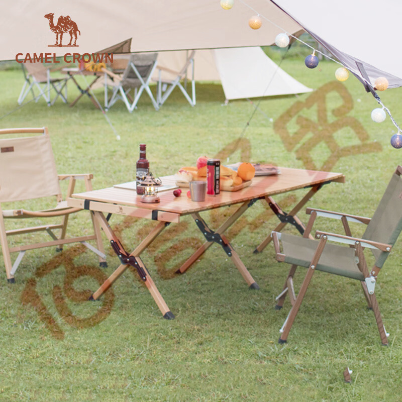 駱駝CAMELCROWN戶外露營木質(zhì)蛋卷桌庭院燒烤野營野餐櫸木桌子便攜折疊桌椅套餐 A2S31A102,原木色(大號) 自營