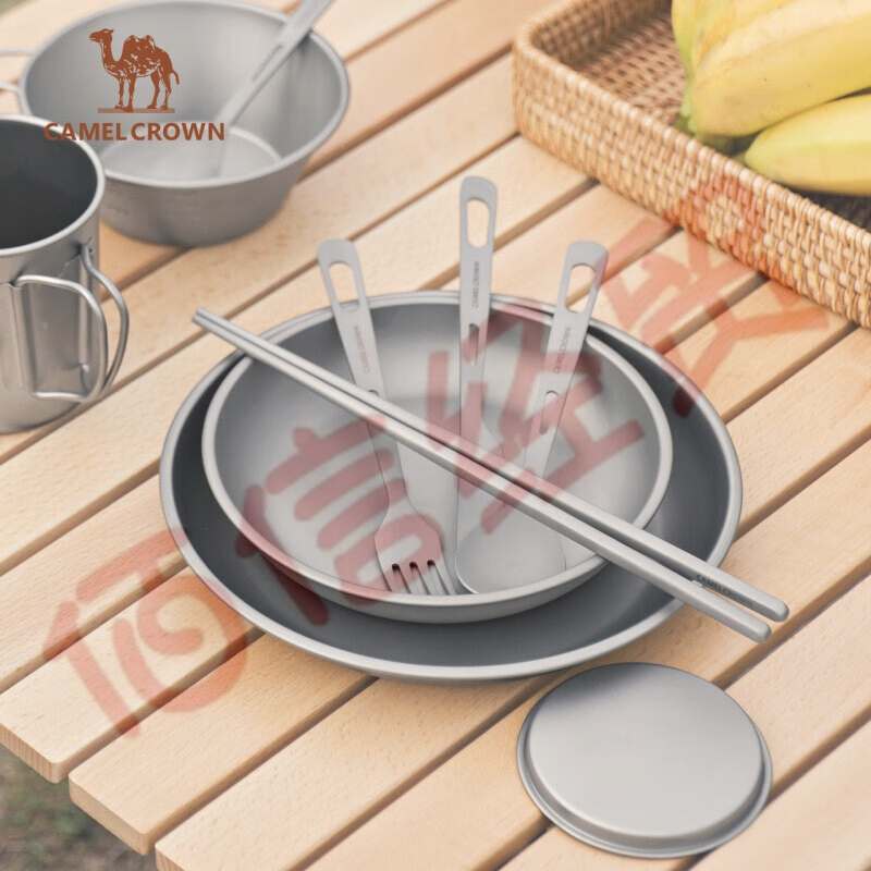 駱駝CAMELCROWN戶外精致露營餐具野餐燒烤便攜不銹鋼野營裝備純鈦多功能刀叉套裝 1152263003,大套鍋 自營