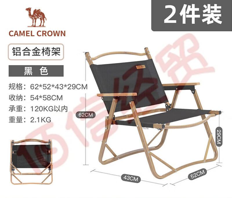 駱駝CAMELCROWN 戶外露營(yíng)輕便攜折疊椅陽臺(tái)休閑釣魚椅子野營(yíng)裝備野餐克米特椅 T101-3,黑色(鋁合金經(jīng)典款*2件裝) 自營(yíng)