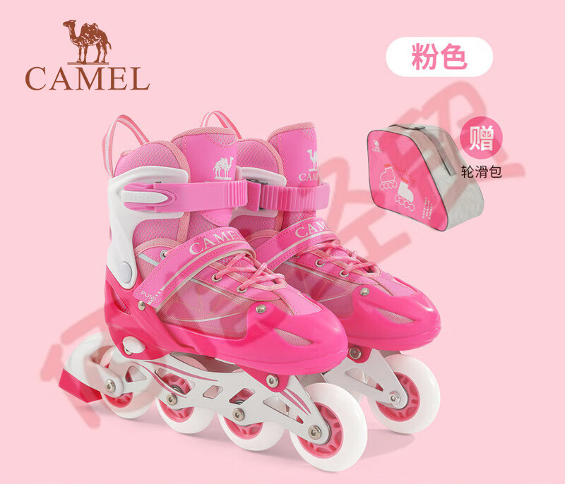駱駝(CAMEL)溜冰鞋兒童初學(xué)者青少年專業(yè)輪滑鞋男童滑冰旱冰鞋女童可調(diào)節(jié) A1223816813,粉色(送輪滑包) M(34-37碼) 自營