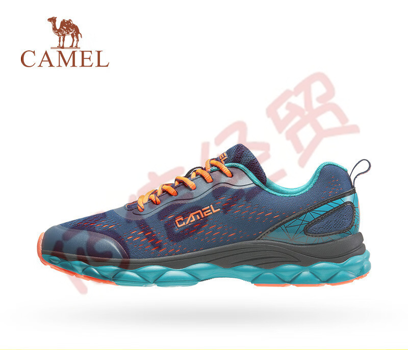 駱駝(CAMEL)飛線運動鞋情侶越野跑步鞋女鞋耐磨透氣減震運動男鞋 0032,靛藍,男 41 自營