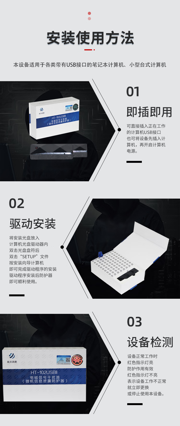 航天潤普 HT-102 微機信息泄露防護器 適用于臺式機 計算機視頻信息保護 視頻干擾器