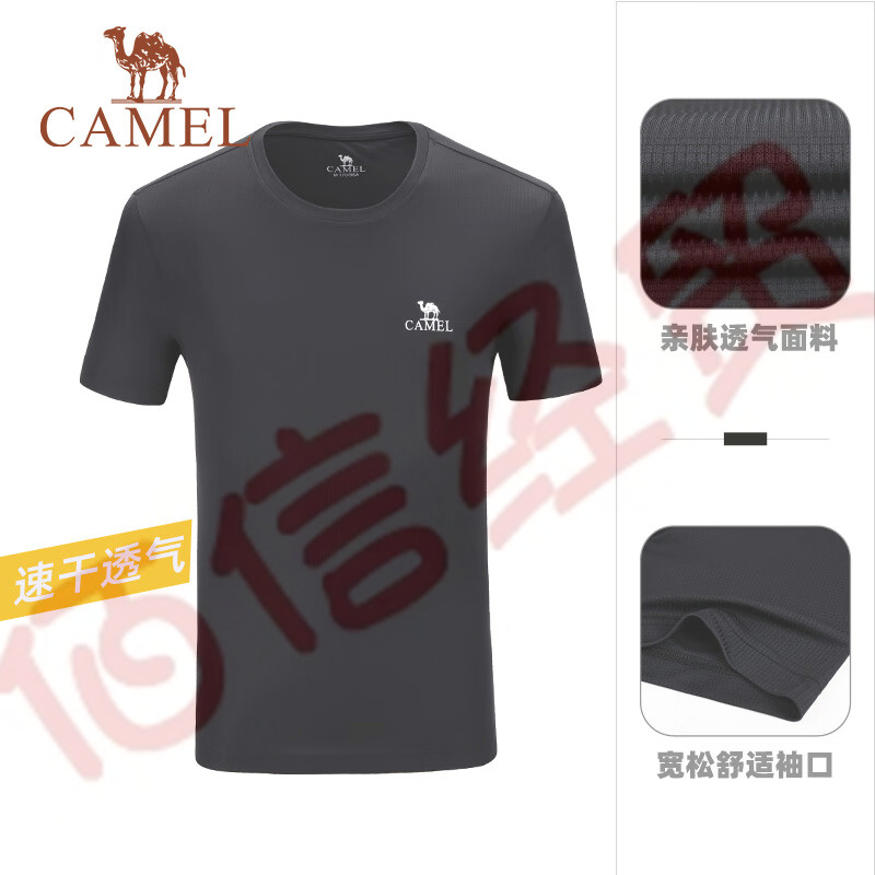 駱駝(CAMEL)官方店運(yùn)動T恤男款休閑運(yùn)動短袖吸濕短袖圓領(lǐng)T恤 6925,黑色,男 XXXL 自營