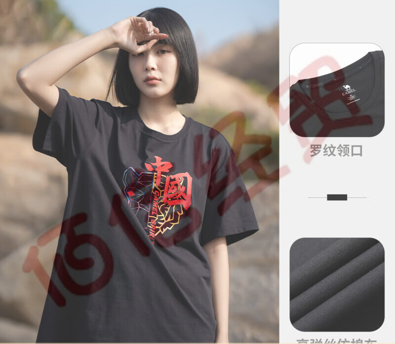 駱駝(CAMEL)戶外速干衣女款春夏季國潮印花時尚寬松透氣休閑上衣 7012212001,極地白,女 S