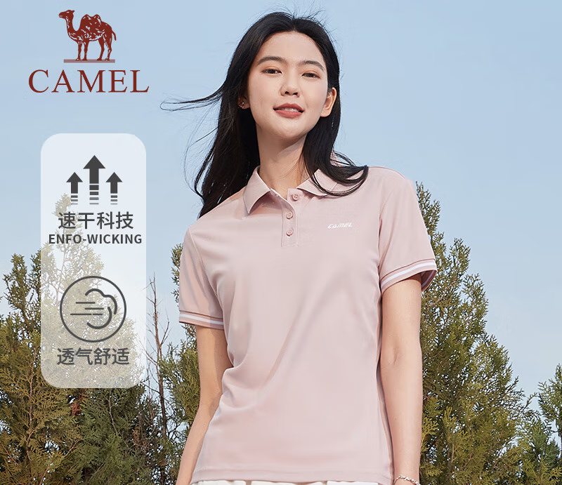 駱駝(CAMEL)戶外速干衣女款春夏季國潮印花時尚寬松透氣休閑上衣 7012212001,極地白,女 S