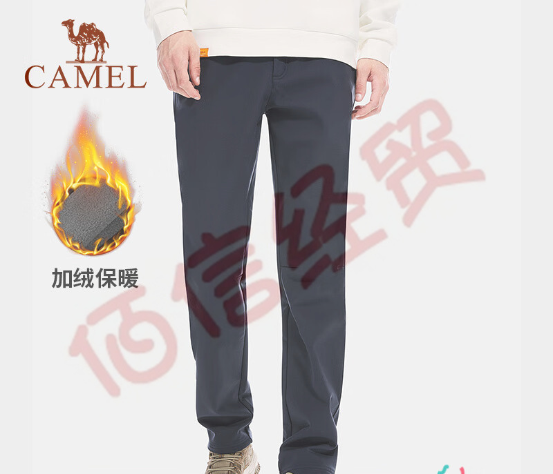 駱駝(CAMEL)戶外軟殼褲長褲男款保暖休閑褲防潑水防風(fēng)登山褲 A1W2VV125,墨藍,男 XL 自營