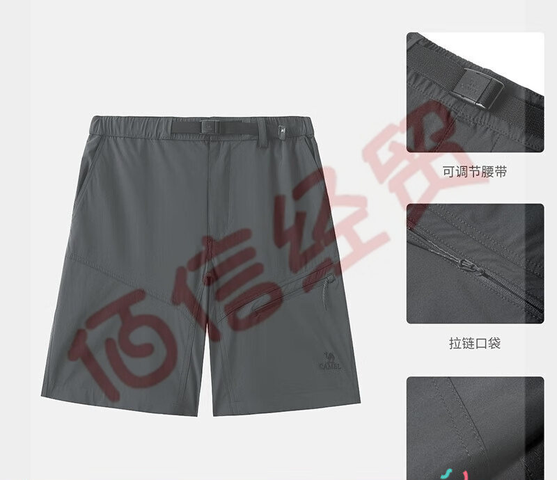 駱駝(CAMEL)【冰膚涼感】戶外男速干五分褲2023春夏冰感彈力短褲子帶腰帶 A13BA18024,墨灰,男 M 自營