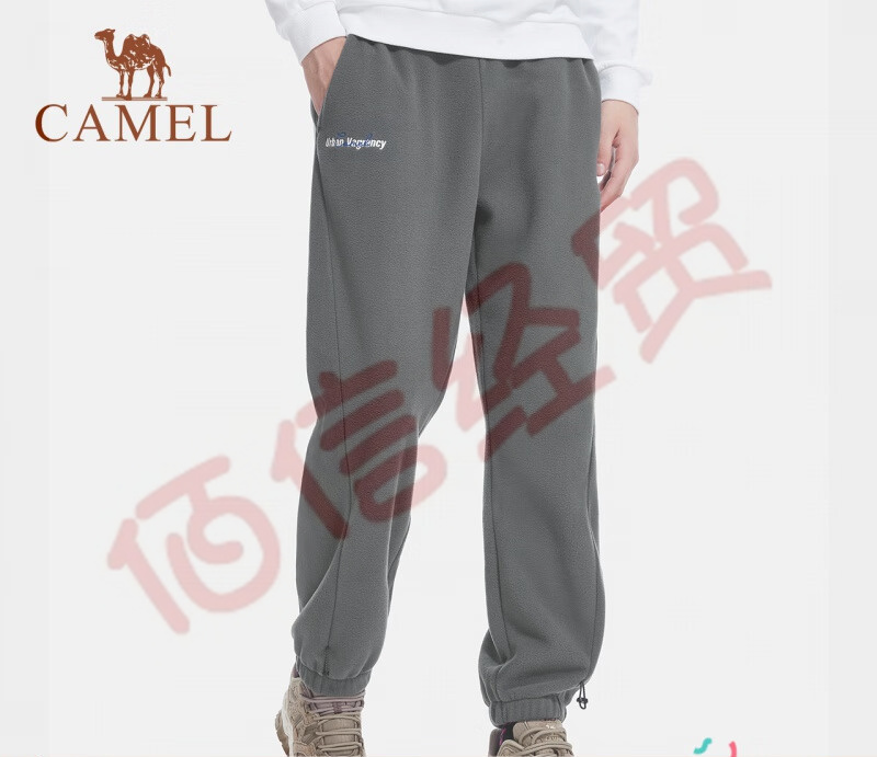 駱駝(CAMEL)戶外抓絨長褲男款款保暖親膚簡約寬松潮流休閑褲 A1W22O2107,墨灰,男款 XL 自營