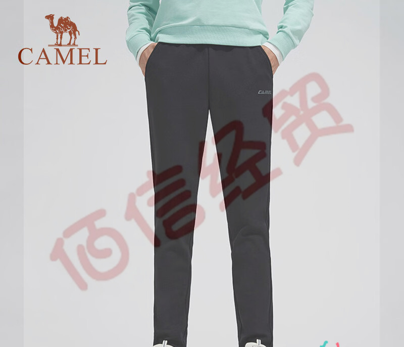 駱駝(CAMEL) 加絨運動褲男女長褲加厚保暖直筒休閑褲子修身針織衛(wèi)褲 C1W15E603-1,黑色,女款 L 自營